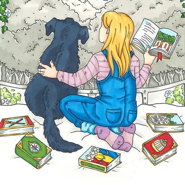 Je pourrais résumer ce roman comme l’histoire d’une fillette qui contemple chaque jour une forêt mystérieuse depuis la fenêtre du Château où elle vit. Un matin, un chien noir surgit à la lisière des arbres, déclenchant une amitié inattendue qui deviendra un véritable refuge. Merlin accompagne Nora dans ses longues journées à l’École Solitaire, dans les couloirs chargés de bric-à-brac de Trouve-tout, le magasin familial, mais aussi dans sa quête pour comprendre le silence de la Grand-Muette et les racines parfois oubliées de sa propre histoire. Le roman entremêle son récit à d’autres histoires que les lecteurs·ices de tout âge reconnaîtront, créant un jeu de miroirs entre fiction et réalité.
